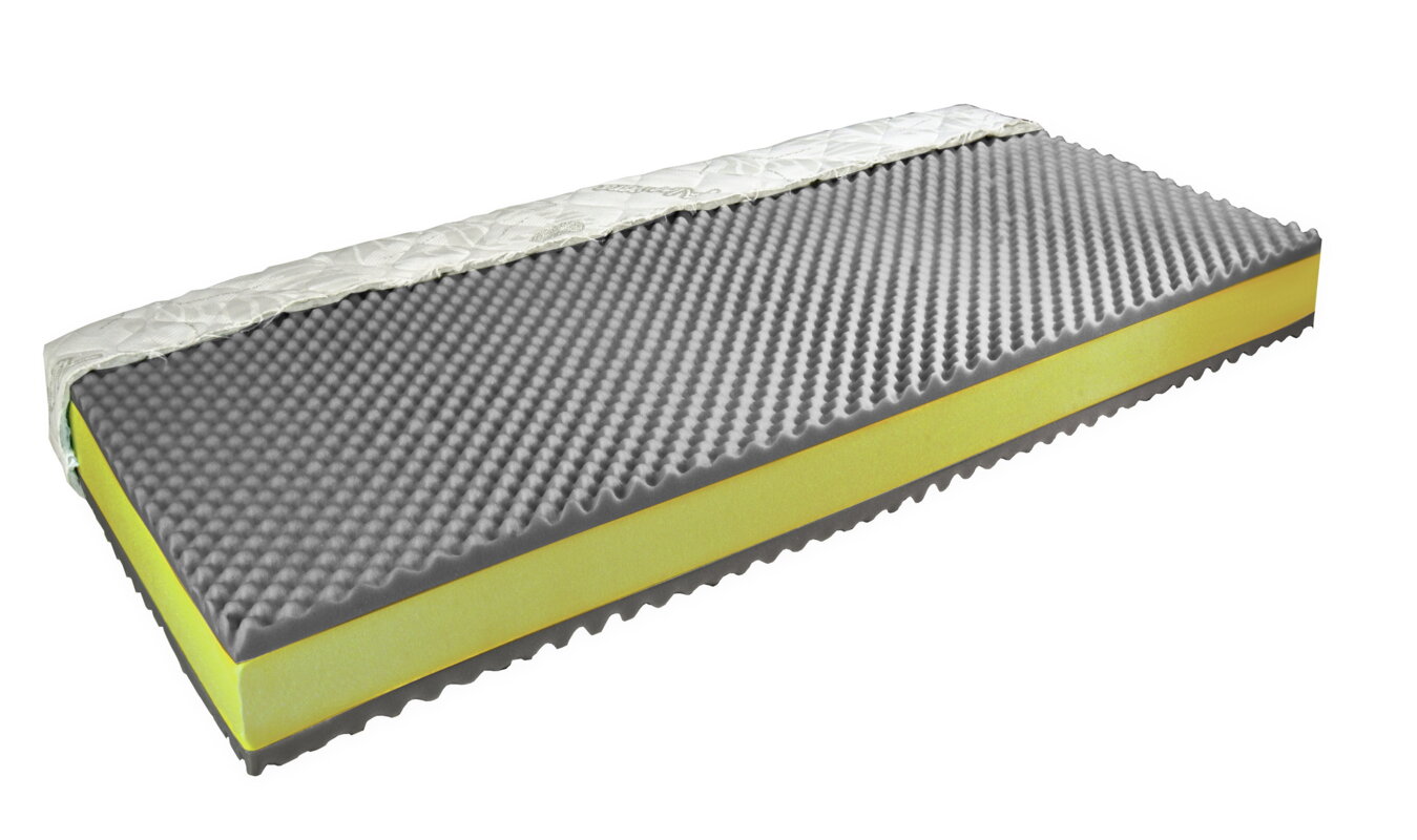 - Oboustranná matrace se skládá z polyuretanové pěny, konstrukce sendvičového typu.